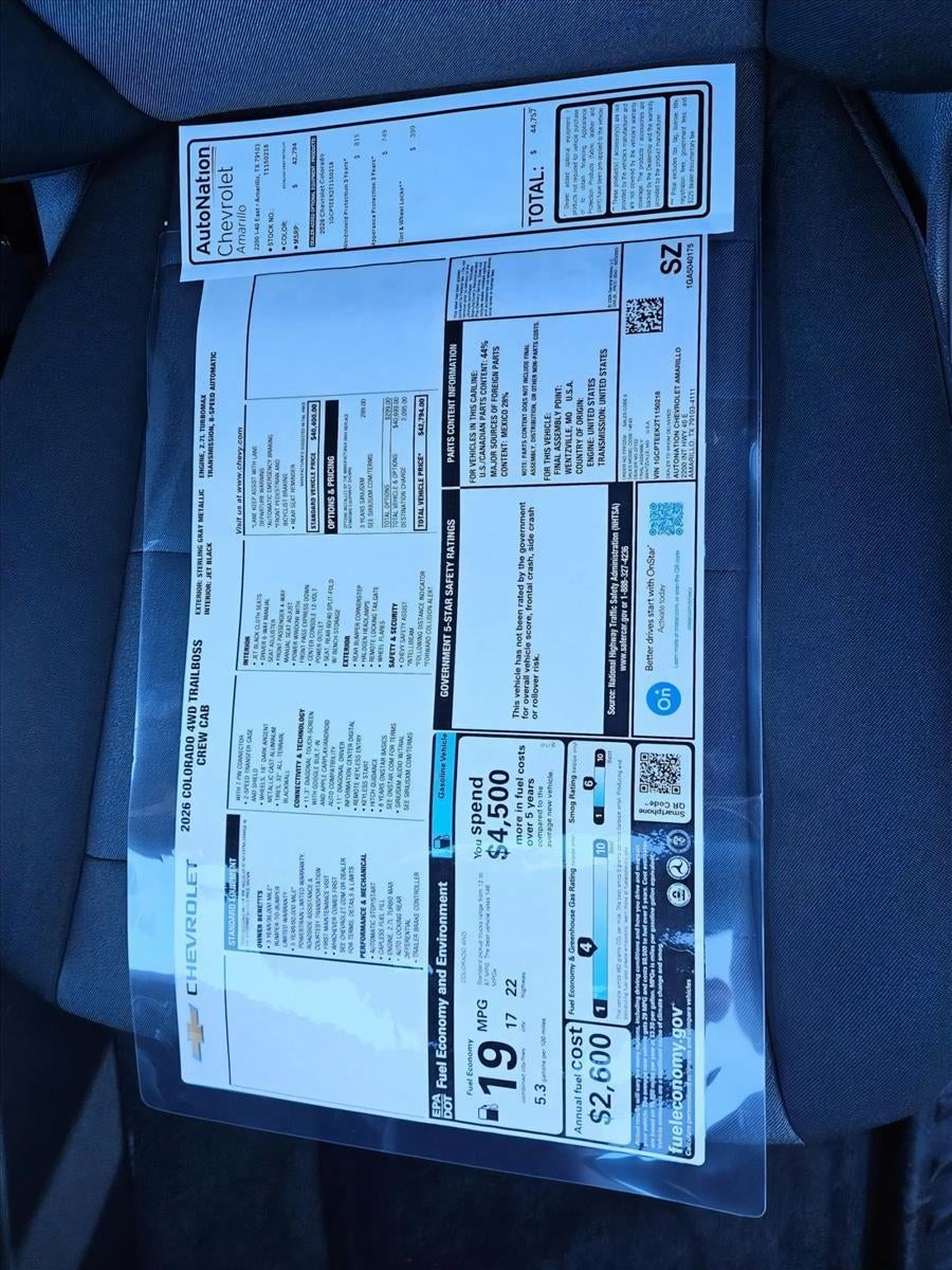 - Trail Boss Preferred Equipment Group includes standard equipment